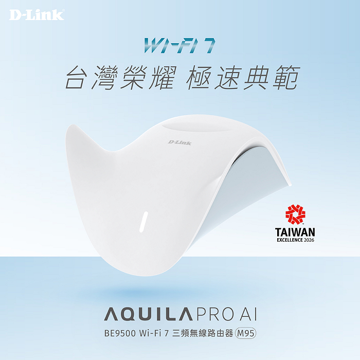 D-Link 友訊科技再次擦亮 MIT 台灣製造的國際招,旗下 AQUILA PRO AI M95 BE9500 Wi-Fi 7 三頻無線旗艦路由器憑榮獲第 34 屆台灣精品獎,未來將以創新科技驅動永續發展,深化產品研發與製造整合,鞏固其在全球智慧網通市場的領導地位。
