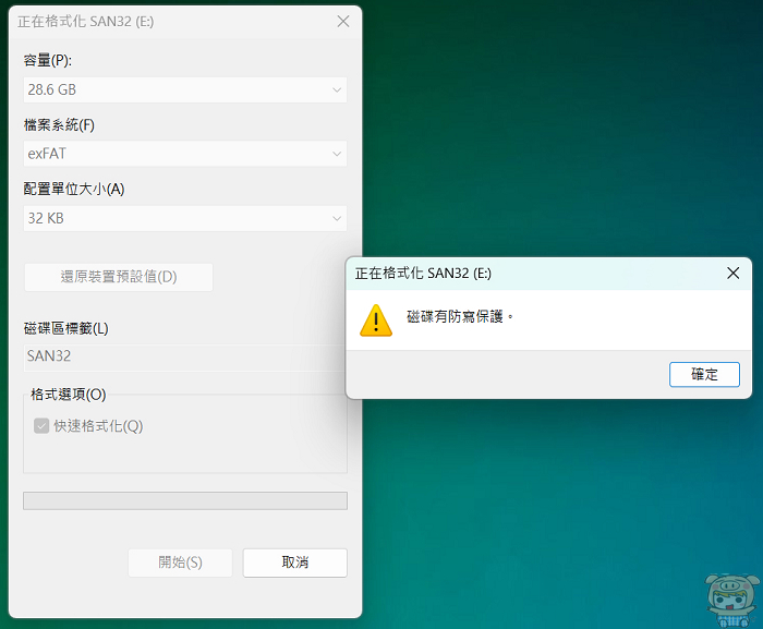 移除與格式化有防寫保護的隨身碟或SD卡