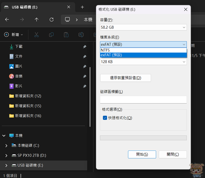 另外不知道大家有沒有發現,自從記憶卡大於32GB之後,每次想要格式化時,就只剩兩個選擇,NTFS與exFAT那種格式,已經不能格式化成FAT32了,因為有些設備裝置,只能支援FAT32的格式😢😢😢