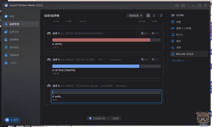 小米就介紹到這邊啦,EaseUS Partition Master 磁碟管理大師功能真的非常多,非常好用,除了上面介紹解除防寫保護、解鎖BitLocker、或是格式化FAT32檔案格式等,它還可以格式化硬碟,磁碟,以及複製磁碟、系統移轉、MBR轉GPT磁碟,調整磁碟大小,程動分割區,合併磁碟、清理資料等太多太多好用的功能啦,如果您也有這方面的需求,那EaseUS Partition Master 磁碟管理大師肯定是最佳的選擇!