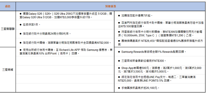 Samsung Galaxy S26 旗艦系列型號售價/各通路預購方案