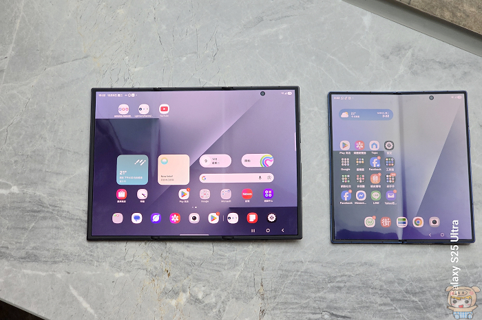 全展後之後的厚度,Galaxy Z Fold7 看起來較薄點。