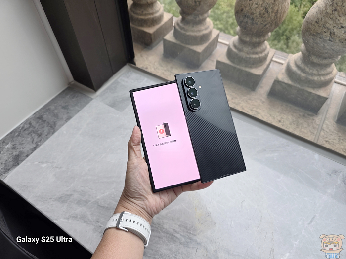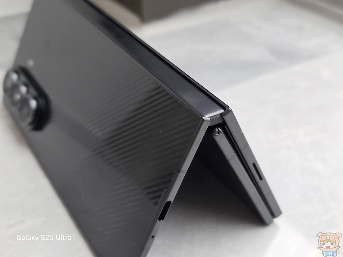 Galaxy Z TriFold 三摺全展開之後充滿氣勢,機身展開後最薄處僅 3.9mm,整體握起來算是輕薄俐落,為了讓三摺的結構更耐用,它使用 Armor Flex Hinge 雙尺寸轉軸結構,開闔時手感和阻力感覺較一致,穩定度更好。