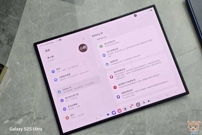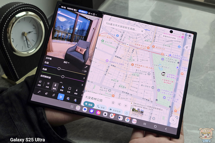 AI 功能也整合在大螢幕體驗中,包括生成式相片編輯、塗鴉轉圖像、AI 文字助手摘要或翻譯網頁,以及升級後的 Gemini Live,大螢幕讓編輯、比對前後圖像操作更方便,整體使用上更加順手。