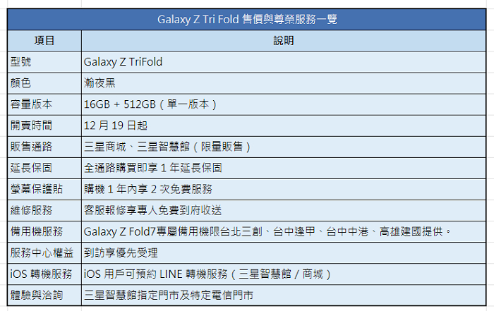 Galaxy Z TriFold 上市資訊與優惠方案