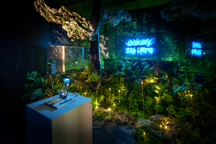 三星微風旗艦體驗館產品展示體驗區 Galaxy Innovation Lab同步換上嶄新風貌,以「星夜叢林Dark Jungle」為主題,以夜間森林與野生動物的探索場景為靈感,將空間轉化為科技、自然與藝術交織的互動世界,現場展出寫實山林的巨型畫作,消費者可運用Galaxy S26 Ultra頂尖的兩億畫素相機,捕捉細膩的筆觸與層次紋理,感受影像實力的極致表現。