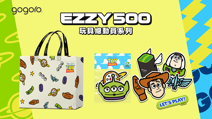 迪士尼皮克斯動畫《玩具總動員》合作車款 Gogoro EZZY 500 玩具總動員系列自 3/3 上市以來,,不到一個月便創下熱銷突破 1,000 台的佳績,車款售價 $74,980,扣除補助後最低入手價不到四萬元,為回饋車迷支持,4 月加碼第二波優惠,即日起至 4/26,購車加購 1 元即可帶回總價值 $2,380 的「造型防滑踏墊」與「超容量巧納袋」兩件組。