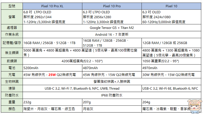 Google Pixel 10 系列差異