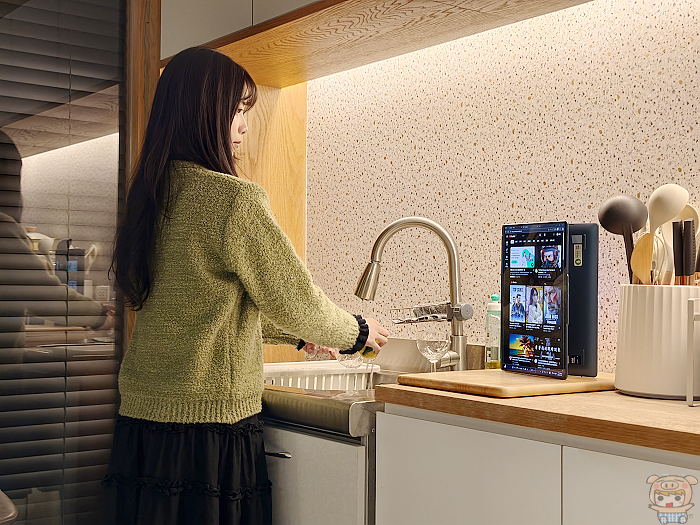 其實用法真的很多,也可以整個把Yoga Book 9 打平,整個攤在桌上,或是直立著放著,就能播放直立式的影片,現在影音平台很多直立式的影片,用Yoga Book 9 來觀看,真的很方便。