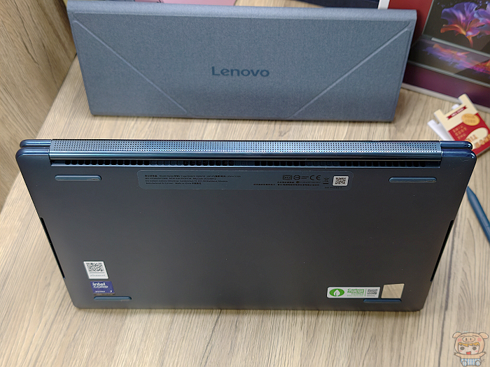 翻過來背面,和一般筆電沒有兩樣🤣🤣🤣,哈哈,Yoga Book 9 本來就是一台筆電,散熱孔位於左右兩側與後方,讓筆電在全力運轉時,也能夠有效的散熱與通風,維持良好的工作效能!