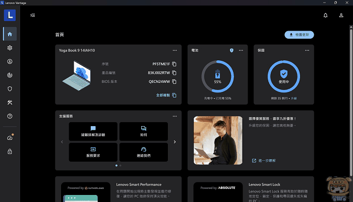 Lenovo筆電還有一個很棒的地方,那就是它內建了 Lenovo Vantage 專屬的應用程式,裡面提供了系統資訊、系統設定、效能調整等快捷功能,有任問題時,也都可以透過它來診斷,以及復原,另外也可以透過線上Chat、技術支援、論壇社區等來解決問題! 也可以參考這邊請點我