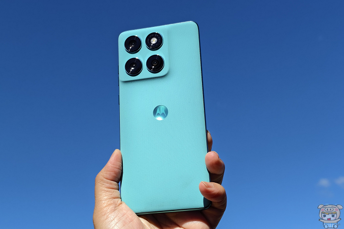 小米手上這款為 PANTONE Amazonite(藍),實機本人超美,機身僅 7.95 mm,雖然 edge 60 fusion 很耐摔,但紋理素皮材質不僅提供舒適柔軟的握感,還有防滑效果,裸機也能放心使用。