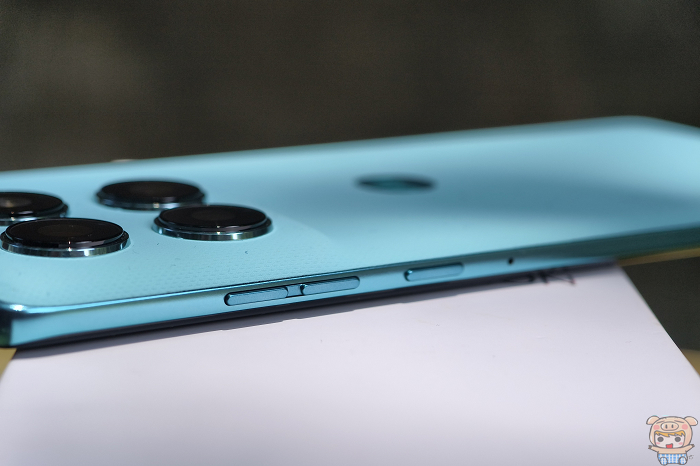 機身右側設置了音量控制鍵、獨立電源鍵兼 Google 語音助理按鍵(Gemini ) 或設定為 moto AI 鍵。