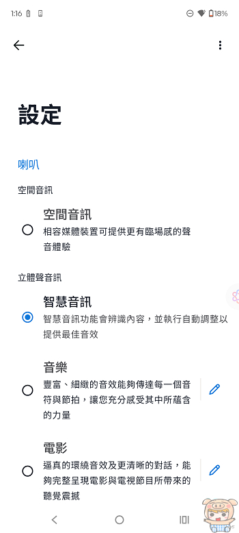 Dolby Atmos 音效還提供空間音訊及智慧音訊調整,系統會自動識別你正在觀看影片、玩遊戲或聆聽音樂等情境,智慧調整適合的 EQ 效果,不論打橫或直立都能保持最佳的立體聲效果。