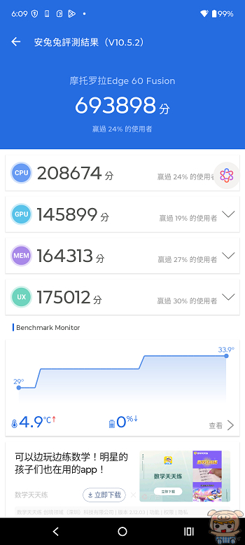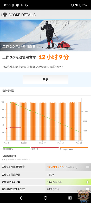 充電效能與續航部分,機身內建 5200mAh 大電池並支援 68W快充,用標配的 68W電器,從 18% 低電量充至 100%滿電大約在 37分鐘內,這充電效率算不錯了,部分高階機款還沒這麼高效率呢~