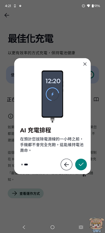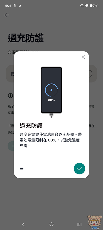 開啟”加速充電”模式之後,手機充電效率會快一些些,若沒有急用,建議平日盡量使用預設模式+過分防護,讓系統自動智慧調整充電效率,才能讓電池壽命長長久久喔。