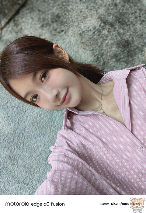想看自拍鏡頭效果嗎? 模特都來了,就請局局自拍幾張,雖然小姐姐本身膚質好,開了美顏還是有把小瑕疵微微修掉,但 AI 介入不多,整體算是偏向日系清新感。