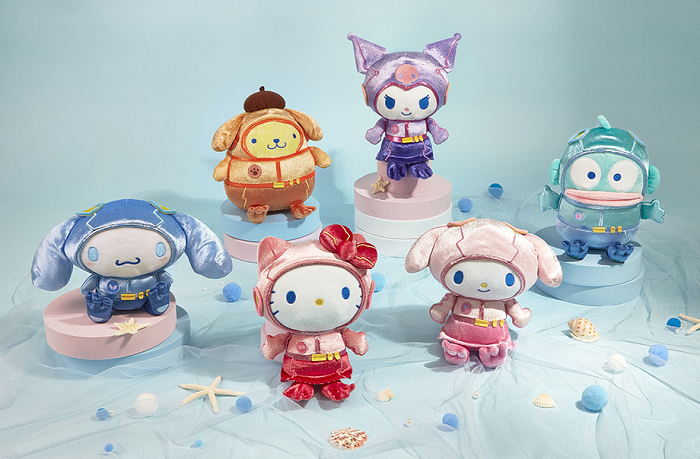 海洋公園 x Sanrio characters「蔚藍海洋之旅」聯名系列精品可愛登場!海洋探索造型的 Hello Kitty、Cinnamoroll、My Melody、Kuromi、Pompompurin 和 Hangyodon 的 8 吋絨毛公仔,都是粉絲必買推薦!另有 4 吋絨毛公仔鑰匙扣版本,配上各自的代表圖案飾牌,讓你隨身開心帶著走。六位 Sanrio 角色的環保袋、化妝包、磁鐵和不鏽鋼保溫杯亦同步推出。
