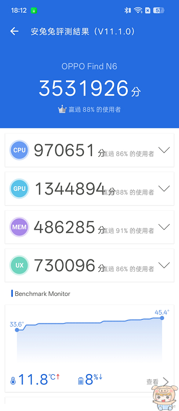 還有! 這代的續航真的超威,外螢幕續航持久就跑到達 24小時,實際在戶外一邊用 OPPO AI Pen 記筆記或畫草圖,甚至拍照、錄影、直播、視訊等長時間頻繁使用,回到家依然有 40%以上的電力,提供安兔兔及 PCmark跑分測試參考。