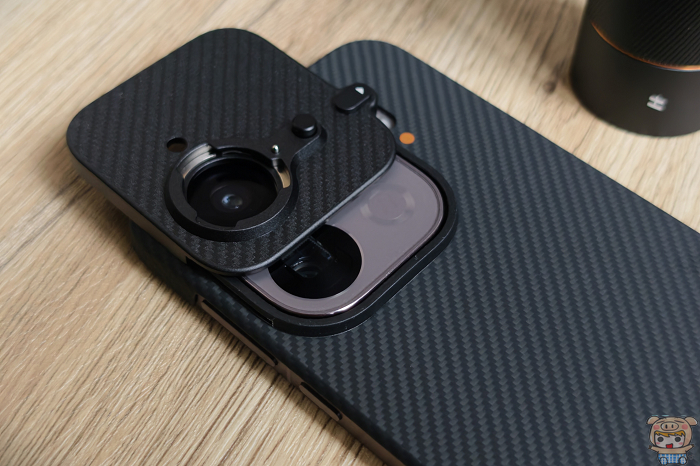 組裝順序為,先幫手機套上專用保護殼,再把轉接環從鏡頭上方往下推即可,固定好後,再把增距鏡上的”橘點點”對準轉接環上的”白點點”,對準後在輕輕微微轉上,就整個組裝完成了。