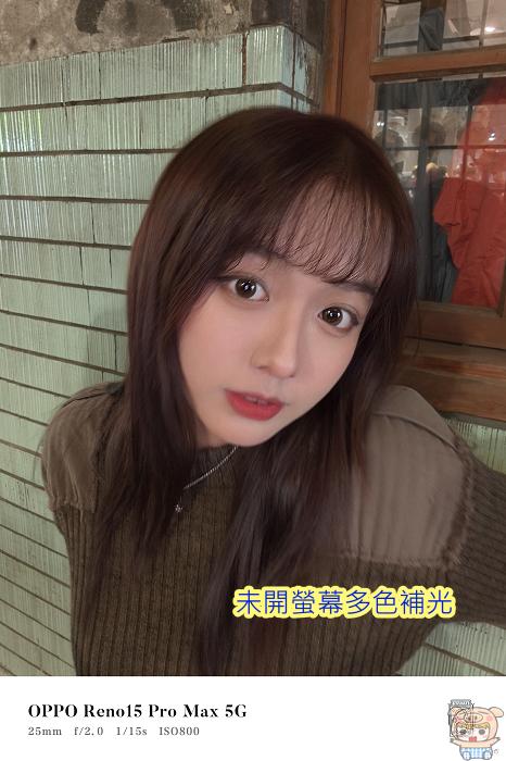 OPPO Reno15 系列為業界唯一擁有螢幕多色打光功能的手機,原理是利用螢幕控光技術,拉高螢幕局部亮度,優點就是能讓灑在臉上的光源更為均勻,也能避免傳統後置閃光燈直射臉上的過曝或怪異陰影,讓膚色顯得 Q彈、立體感也更好,而色溫也能自行調整,喜歡冷色 or 暖色都能自己來,這對於有常需要直播、Vlog 的族群相當方便。