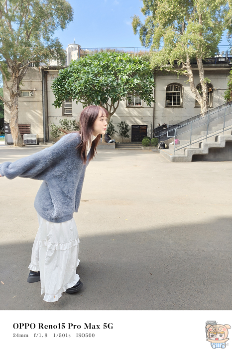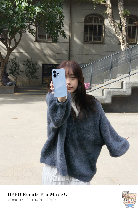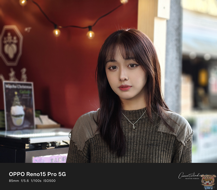 人像方面,單眼感和自然的美顏也是 Reno 的強項之一,搭配 cc膠捲濾鏡也能玩出專業相機的底片感,Reno 15 Pro Max的人像表現上,主體和背景之間的過渡稍微明顯,不過整體是好看的,等上市後更新優化效果會更好,焦段則有1x(24mm/35mm) 、 2x(48mm) 及 3.5x(85mm)選擇。