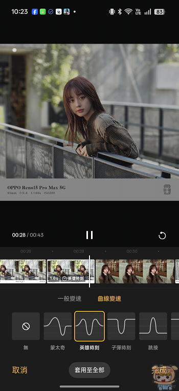 另外,實況照片也支援後續慢動作編輯,效果更貼近電影感,提醒一下,若從 Reno15 Pro 和 Pro Max 傳輸到 iPhone,有可能會遇到幀率延遲的問題,建議直接以影片檔傳輸,而且比對之後,你會發現 Reno15 系列的原況畫質,比 iPhone 清晰、細節也更出色。
