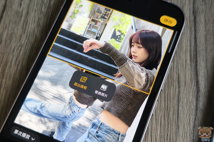 拼圖方式非常簡單,先選取 2~9 張實況或靜態照片,在點選 “拼圖” ,便會跳出靜態 or 實況拼圖兩種選擇, 接著點按要放大的圖片,會出現 “超出邊框 or 替換照片”, 選擇前者之後,等待圖片出框,在調整位置和大小即可,拚好之後直接儲存就完成了,提醒一下,使用出圈拼圖需要連接網路才能生成喔。