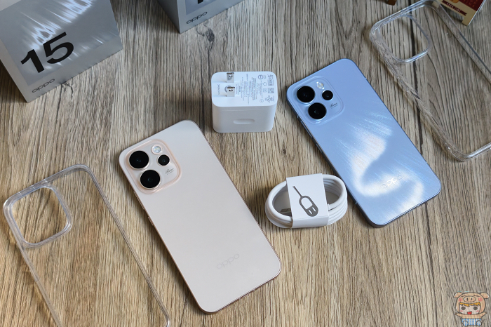 OPPO Reno15 Pro Max、Reno15 Pro 就玩到這兒~ 照舊來看隨盒配件和絕美機身配置~ 包括透明軟質保護套、80W 超級閃充充電器、USB 充電/傳輸線、取卡針與保護貼一張(已貼好在手機螢幕上)。