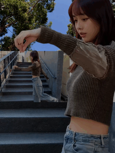 首先,拍的時候,建議找背景簡單乾淨區域,然後喬一下拍攝範圍和角度,主角動作最好誇張一點,視覺張力會更強,接著選幾張自己喜歡的靜態+動態照拼起來,就能做出類似 3D立體感的連續動作效果。