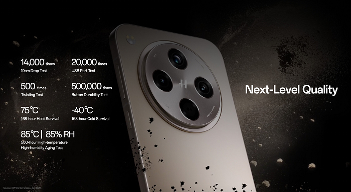 - 超越日常使用的流暢體驗:在產品材料與設計上,OPPO持續推動創新,透過根本性的設計突破,不僅有效防護意外進水、摔落等突發狀況,更實現順暢無礙的使用體驗。例如,採用超高強度鋼材與航太級鋁合金,大幅提升耐用性;並導入晶盾玻璃,提供超越日常使用的可靠保護。