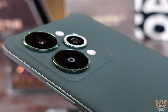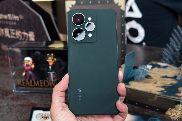 realme 15 Pro 星森綠採用皮革材質,質感較為內斂低調。