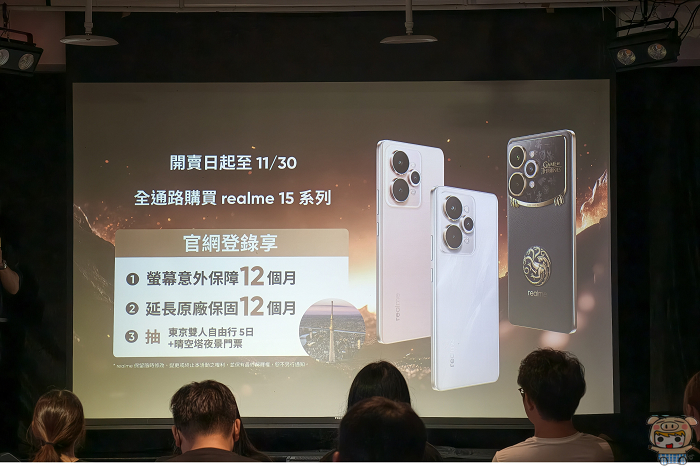 realme 15系列正式上市,全系列以「城市不夜機」為設計靈感,內建 7000mAh泰坦電池及 AI派對模式與AI圖像精靈等智慧影像功能,呼應年輕族群對夜間影像與即興創作的熱愛,並以「夜景人像」、「長效續航」與「時尚設計」三大核心升級為亮點,帶來同價位段中罕見的旗艦規格。此外,realme 15 Pro權力遊戲限量版禮盒預告上市,售價NT$10,990元起。realme 15T也將於11月上市。