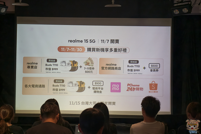 realme 15 5G「鈦空灰」與「光織粉」配備12GB+256GB組合,建議售價NT$10,990,則將於11月7日正式開賣。