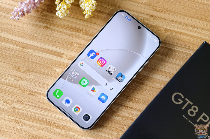 手上這款 realme GT 8 Pro為「風動白」,色調有點奶油色,背蓋採用玻璃材質,另外一款「星馳藍」,則採用比傳統素皮更輕、更薄,耐磨及抗腐蝕的皮革,同樣都有不容易沾附指紋的優點。