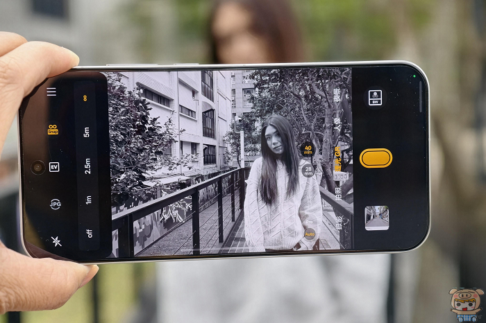 實際拍起來會需要一點時間熟悉,抓到節奏後才會越拍越順,如果是拍人建議用 1m、1.5m,街景或風景就用 2.5m、5m、∞(全場景 ),不過街拍就是看個人喜好,直式、橫式喜歡怎麼就怎麼拍。另外,雖然僅主鏡頭支援理光 GR,但超廣角和 2億潛望長焦拍攝實力也很出色,三顆鏡頭實拍成像如何? 繼續看下去~