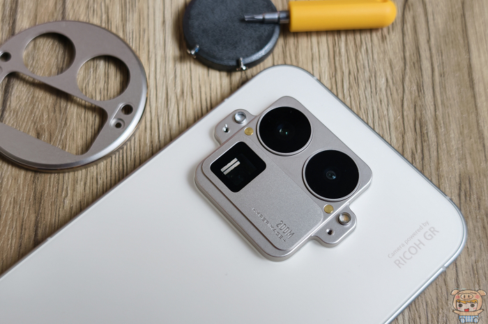此外,鏡頭模組右側的 RICOH GR 於光線下轉動,字體還會呈現層次透亮光澤,也呼應了經典 GR 相機的光影感。