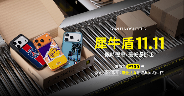 重新定義防摔標準的 RHINOSHIELD 犀牛盾手機殼,此次雙 11 將超過千款「正版授權圖款」加入超殺強檔中,全站最低 5 折起,訂單滿 $1,799 現折 $300,指定全家便利商店取件,再送熱經典美式(中杯)。