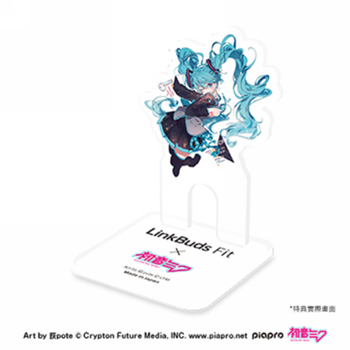 由日本插畫家 荻pote 全新設計的初音未來壓克力架,底座特別規劃可放置 LinkBuds Fit 耳機充電盒。