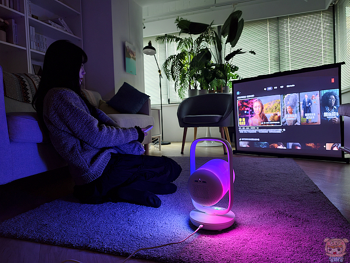 投影機、RGB藍牙音響、氛圍情境燈,我通通都要!一次滿足多種願望!300°旋轉功能,讓您輕鬆的追劇、看電影!無論是要躺著看、坐著看,不管怎樣看都好看!
