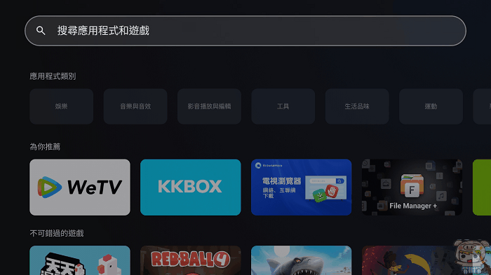 想要什麼應用程式,自己到Google Play 商店下載就行啦,Youtube、NETFLIX、prime video、Disney+ 通通有,而且裡面也有內建遊戲可以下載來玩!透過遙控,或是外接遙桿來操作。