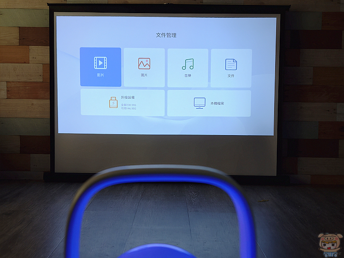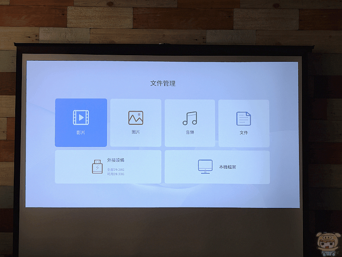 當您接上滑鼠時,畫面上就會出現一個鼠標,這樣就可以直接用滑鼠操作了當然也支援藍牙鍵盤或滑鼠,只要配對好後就可以使用了!如果你接上去的是隨身碟和外接USB硬碟,這樣就可以檔案總管來瀏覽它,裡面如果有照片或是影片的話,就可以直接在投影機播放,投影出來!