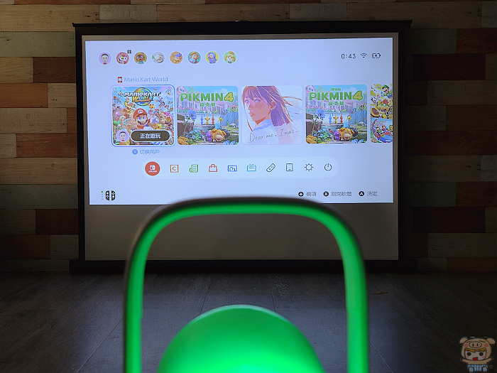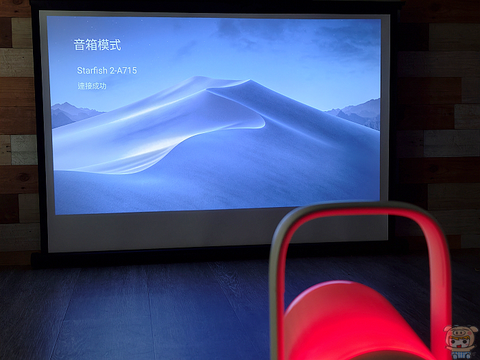 另外還有HDMI埠,可以直接拿它來接SWITCH或是PS5 等設備,用大畫面玩遊戲爽度肯定比用電視玩還來的高,而且Starfish 2 煥彩投影機配置了支援杜比音效的喇叭,聲音實際上用起來還蠻震撼的,玩遊戲或是追劇都非常過癮!