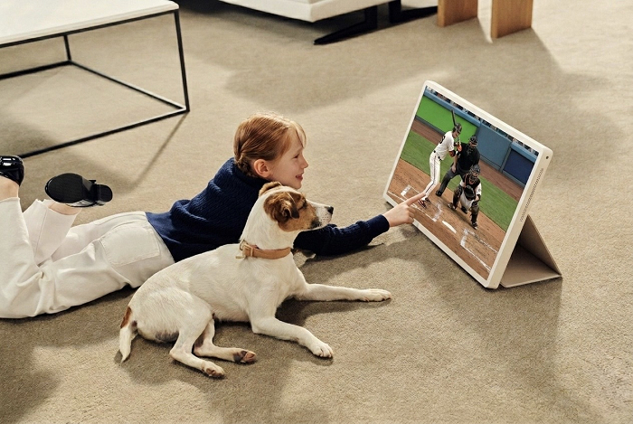 這台平板也太酷了吧,是兩個螢幕連在一起耶...