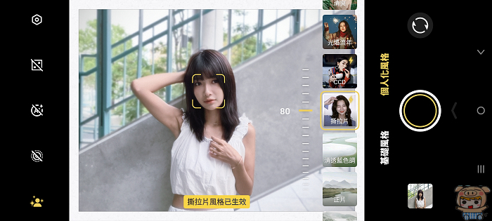 另外,內建的撕拉片人像在製作短影片超好用,在開啟原況功能後,能拍出帶有動態拉絲感的效果,建議拍攝時,選擇純白背景或背景有延伸感的場景(像樹林、騎樓等),更能凸顯這種獨特風格。