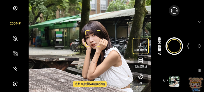 AI 電影分鏡則是「2億高像素」或「5000萬高像素」模式專屬的功能,主要是利用高畫素自動幫你裁切,並確保畫質無損,在高畫素模式內可選擇電影感三拼或底片風雙拼,接著快門按一張,相機系統便會自動裁切構圖, 方便讓你快速出圖 PO社群 。