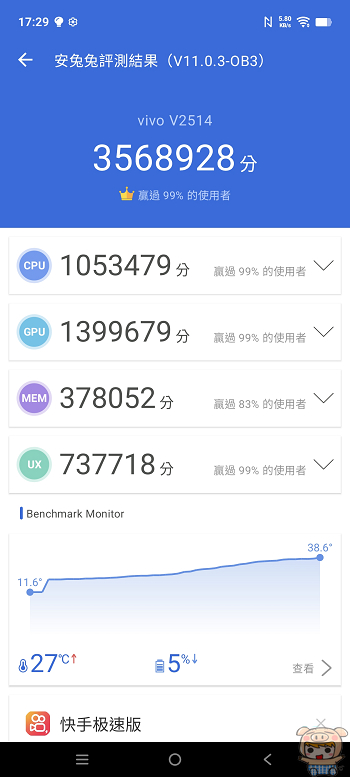 X300 Pro 更搭載 vivo 全新 6nm 製程獨立影像晶片 VS1,以類比專業微單相機的處理流程,高效處理感光元件輸出的 RAW 數據,不僅成片更快,亦帶來更高清晰度與更低雜訊影像體驗,提供雙旗艦安兔兔和 Pcmark 跑分參考。