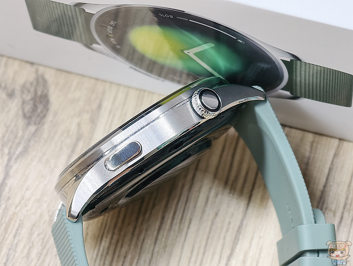316L 不鏽鋼錶殼質感滿滿,錶身的側邊配置了兩顆實體按鍵,包括運動快捷選單的按鍵,以及主頁按鍵的旋轉錶冠,旋轉錶冠方便又好用可以快速選擇想要的功能。
