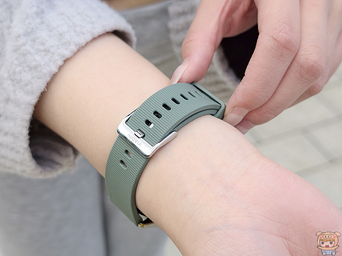 錶帶能夠自行拆卸更換,使用22mm的錶帶即可,官網也有提供高質感的皮革錶帶更換,只要卡榫一摳,就能夠快速的將錶帶拆卸下來更換。