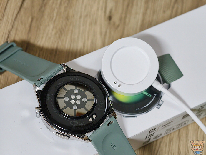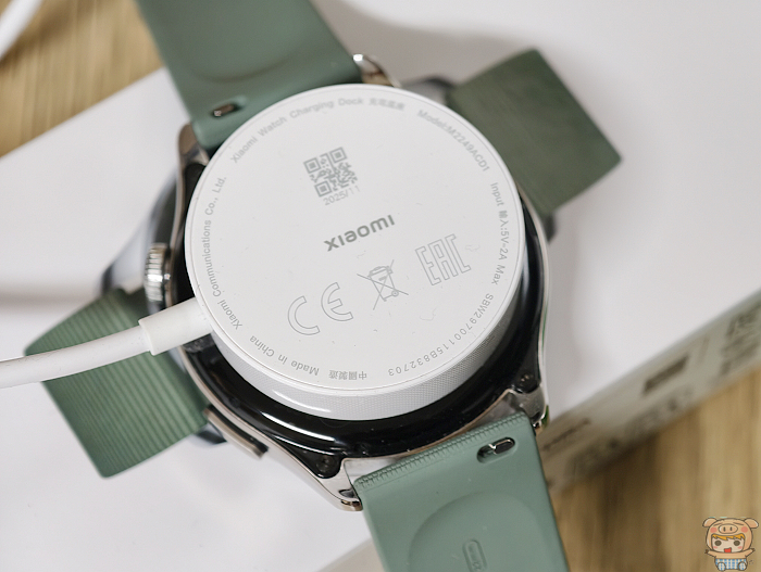 磁吸式的充電座,只要手錶一靠上去就能穩穩的磁吸上去開始進充電,Xiaomi Watch 5 配置930mAh 大容量小米澎湃電池, 充電時間大約90分鐘可充滿,最長可使用18天,智慧模式6天,AOD智慧模式4天。